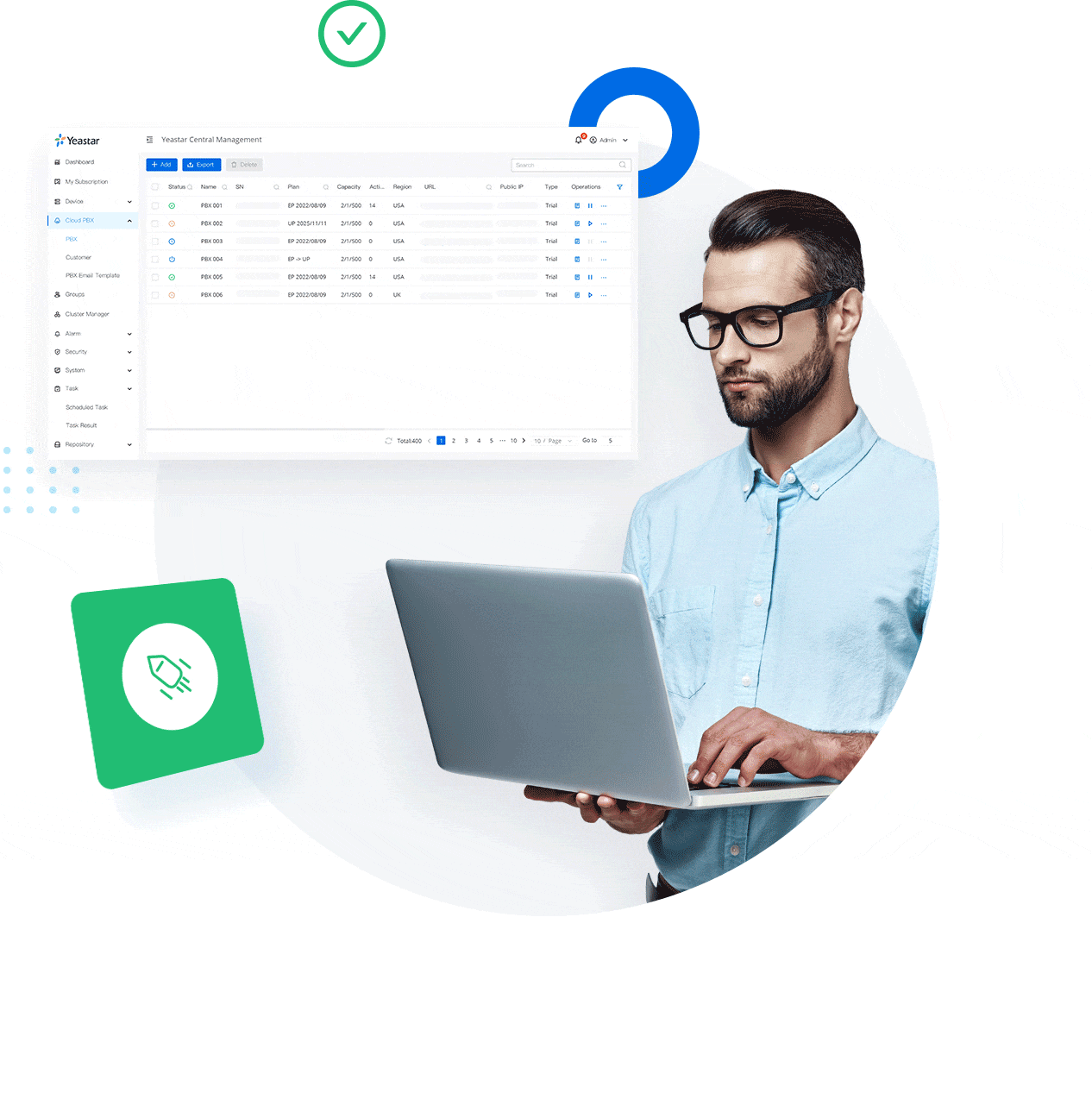 Les déploiements UCaaS se multiplient dans les entreprises et industries de toutes tailles, une vraie mine d’or pour les prestataires de services. Conçue pour garantir le succès des canaux, la solution clé en main P-Série Cloud Edition est une offre sans serveur entièrement gérée qui permet une mise sur le marché plus rapide, une prestation de services plus facile et un retour sur investissement plus élevé. Avec l’aide de Yeastar Central Management, toutes vos opérations se trouvent au même endroit, du déploiement du service à sa gestion, en passant par son fonctionnement.