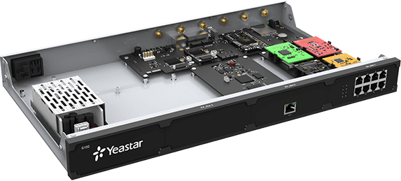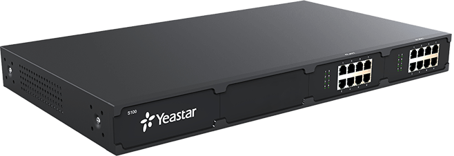 Centrala Yeastar S100 serii S, posiada wszystkie interfejsy telefoniczne jako moduły, które są konfigurowalne. S100 pozwala na instalację 2 modułów do obsługi portów FXS, FXO, ISDN BRI, GSM / 3G / 4G lub E1 / T1 / PRI.