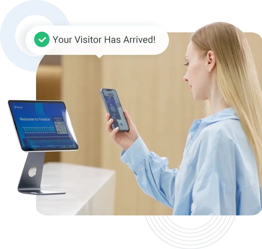 Beside space allocation, smart workplace management also involves with people coming to your office. Built for sign-in automation, security, and compliance, Yeastar Workplace makes it easy to track, welcome, and process company visitors with: