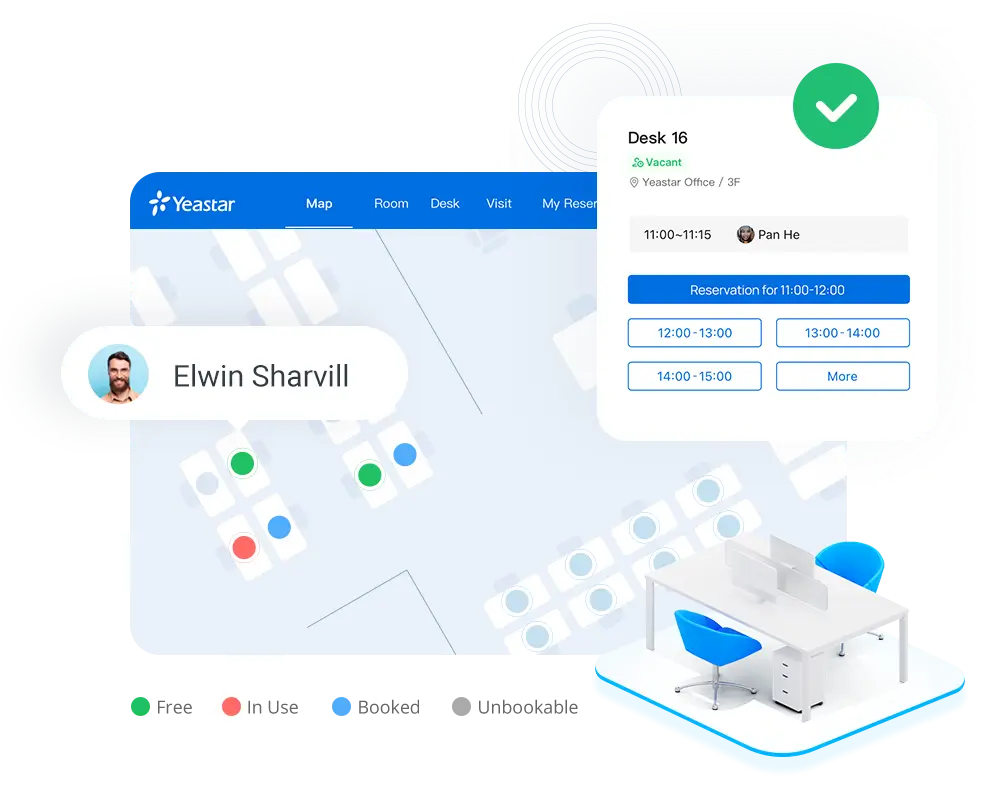 Large-scale implementation of activity-based working schemes is happening now. With a mix of permanent and flexible desks, their availability and locations should be easily visible to employees. Yeastar Workplace enables the hybrid workforce to: