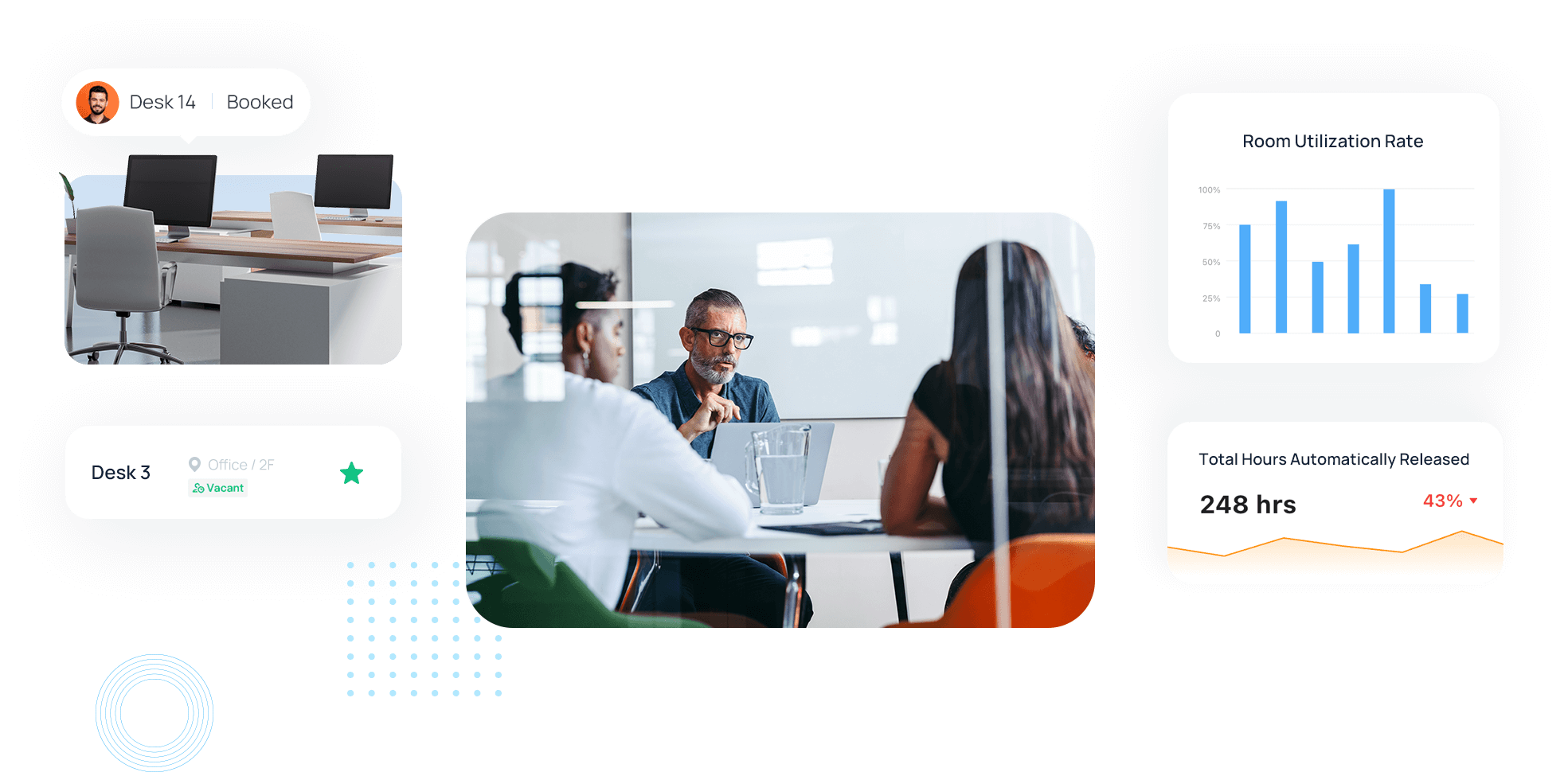 Many companies find it difficult to accommodate everyone’s needs when it comes to meeting rooms while the actual utilization is far beneath maximum capacity. Yeastar Workplace addresses such inefficiency with:
